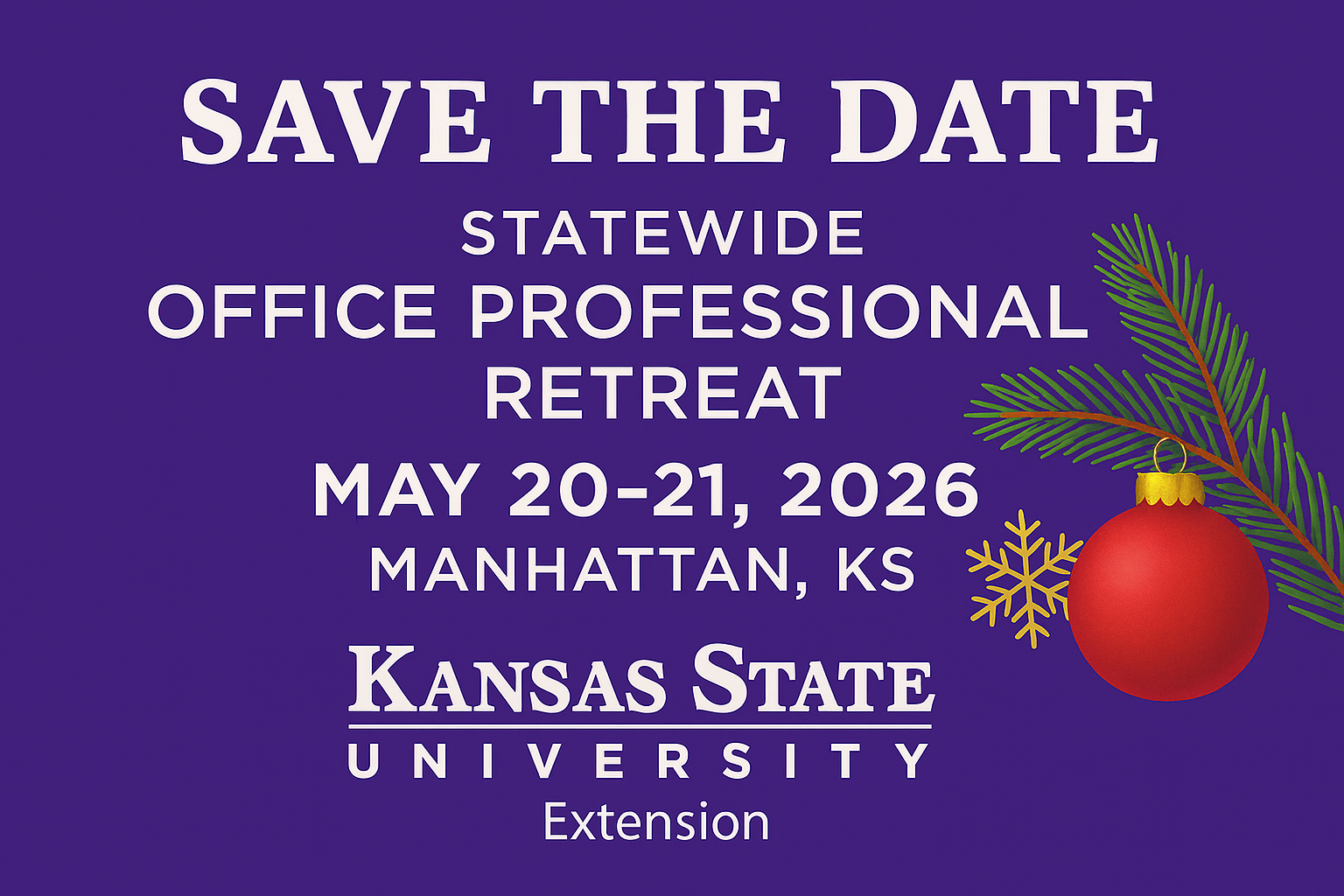 K-State Extension local unit Office Professionals are invited to save the date for the 2026 Office Professional Retreat, May 20-21, 2026.