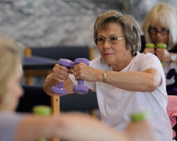 Participants in Stay Strong, Stay Healthy meet for one-hour sessions, twice a week for eight weeks. Activities include warm-up exercises, strengthening exercises with and without weights, and cool-down stretches. Class members are encouraged to do the exercises on their own once more per week. Most training locations will provide weights for use during the program.