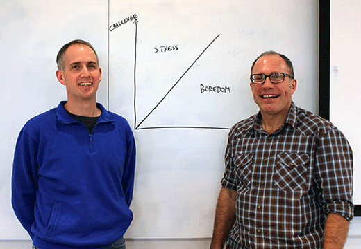 Kansas State University agricultural economics faculty members Brian Coffey (left) and Andrew Barkley won the 2019 North American Colleges and Teachers of Agriculture Jack Everly Journal Award for a recent study. | Download this photo.