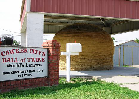 At right: The world's largest ball of twine in Cawker City, Kan.| Download this photo
