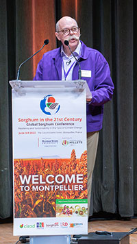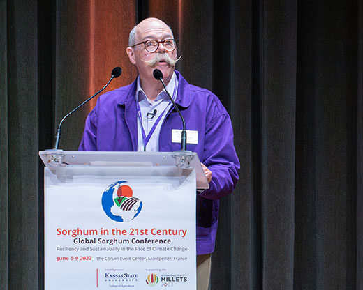 Ernie Minton, the Eldon Gideon Dean of K-State’s College of Agriculture, officially launched the Global Collaboration for Sorghum and Millet during the opening day of the Global Sorghum Conference in Montpelier, France, where K-State is a lead sponsor.